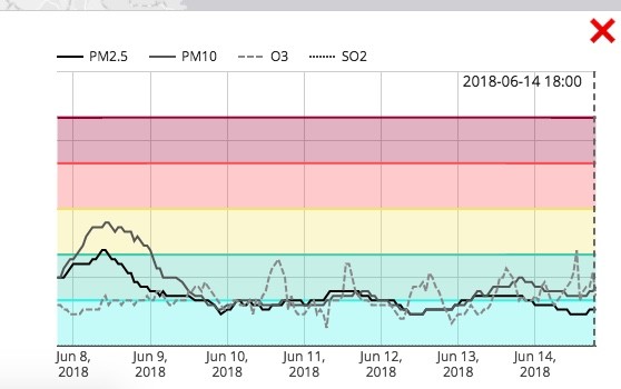 The screenshot shows high levels of PM10 around Jun 8, 2018 and good levels at other times. There was some spike on June 8 for some reason.