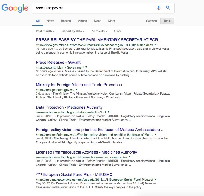 When I published this article, a search on the gov.mt domain for Brexit showed only 7 results over the past month. None of them were tourism related.