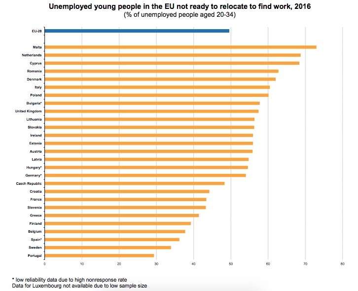 - Half of unemployed young people in the EU ready to relocate for a job; Eurostat; 2018-03-27