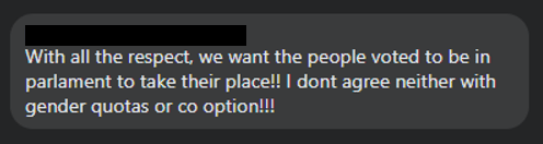 The reform argues that gender quotas are relevant to our country’s situation, with them being required to compensate for structural discrimination, “Gender quotas do not discriminate. Rather, they compensate for existing barriers that hinder women from receiving their fair share of political seats preventing further barriers and mechanisms of exclusion.”.