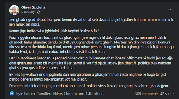 Therefore, this vote-buying doesn’t only come from the top, but also from people like us. People who sell off their vote for a quick government job or help with an ongoing issue, or any other pleasure that they need a member of parliament’s aid with. This issue was highlighted last month by MP Oliver Scicluna on Facebook.