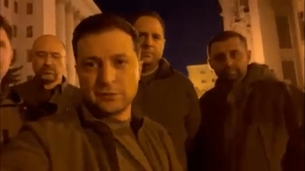 President Volodymyr Zelensky has published a video showing off his ministers in the streets of Kyiv after rumours in the Russian state media that he had fled the capital.