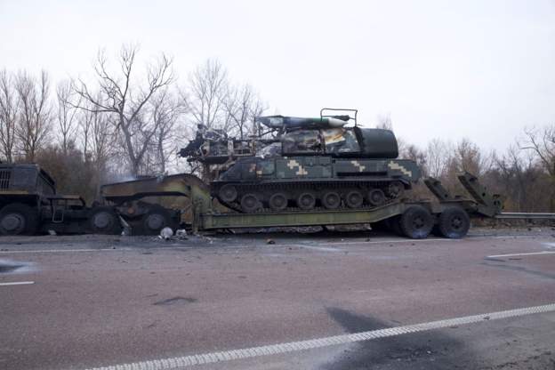 Valerii Zaluzhnyi, the Ukrainian commander-in-chief, says the military has shot down a Russian IL-76 near Vasilkiv, 20 miles southwest of central Kyiv.