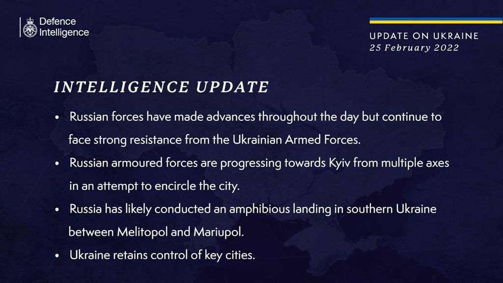 According to their intelligence, the Ministry of Defence has issued an update on the situation in Ukraine.
