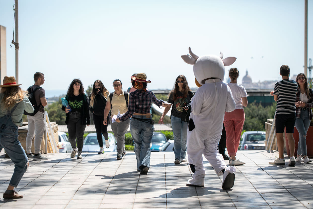 Extinction Rebellion Malta, together with the Animal Liberation Malta group, organised a flash mob today at the University of Malta’s Quad to bring light to the destructive impacts of industrial animal agriculture locally and worldwide.