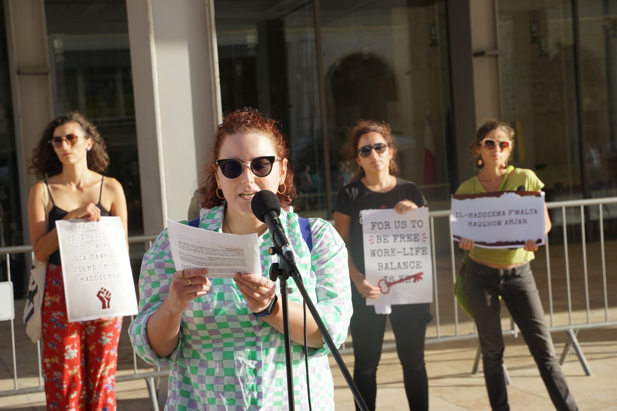 We are a number of civil society organisations representing parents, carers, workers and those working for gender equality and the rights of LGBTQI+ people. We are holding this press conference outside Parliament to demand that the Work-Life Balance law be revisited with the aim of improving it.
