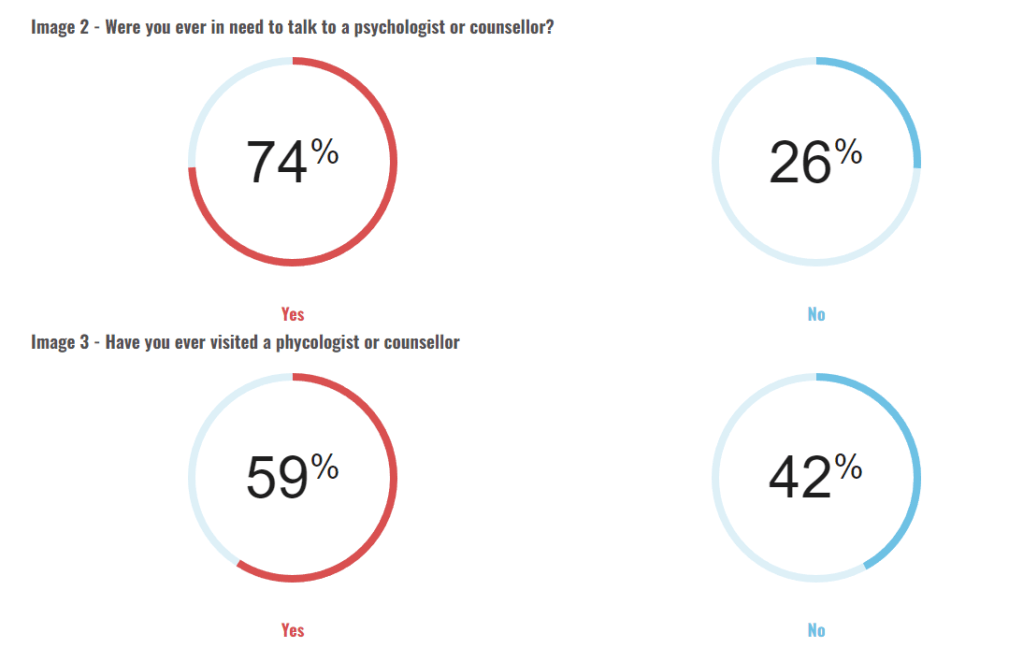 Two fundamental questions were asked with regards to the policy paper. The first question was if they are in need to talk to a psychologist at a point in their life which the results are shown in Image 2 and the other question was Have you ever visited a psychologist or counsellor? which the results are shown in Image 3