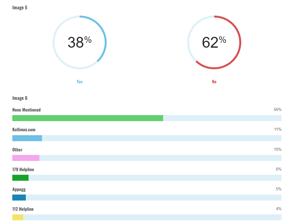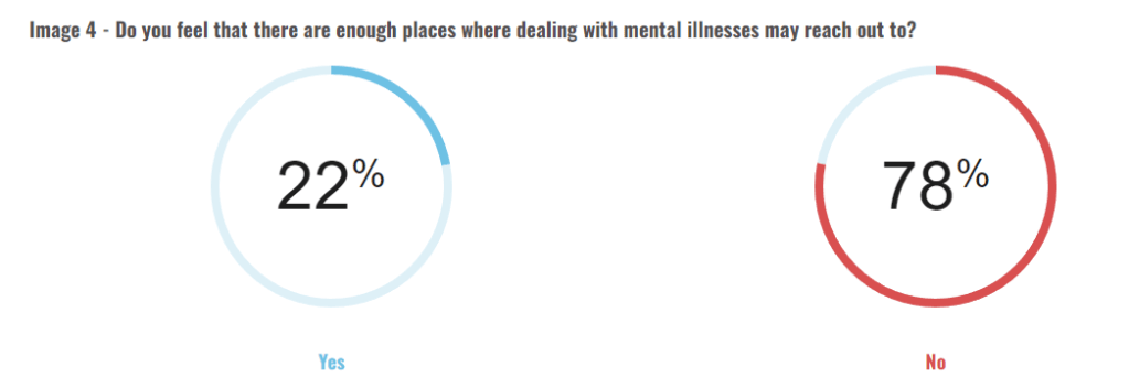 Another important services in the mental health intervention is the 24/7 crisis team. From the survey that was carried out as ween in Image 4 it is resulted that the majority do not know of any crisis or emergency team. As scene in Image 5 those who answered ‘yes’ mentioned various stakeholders causing confusion.